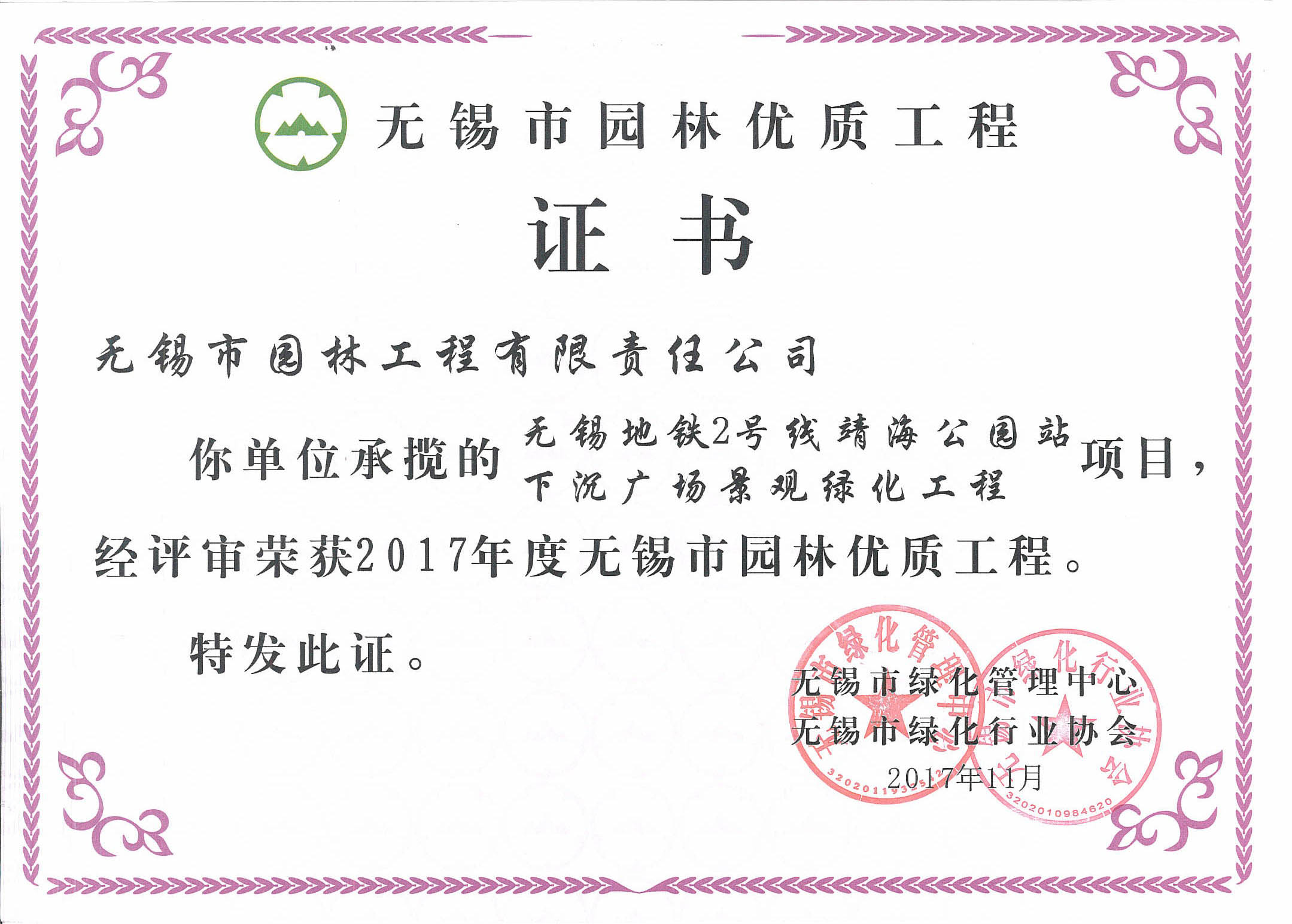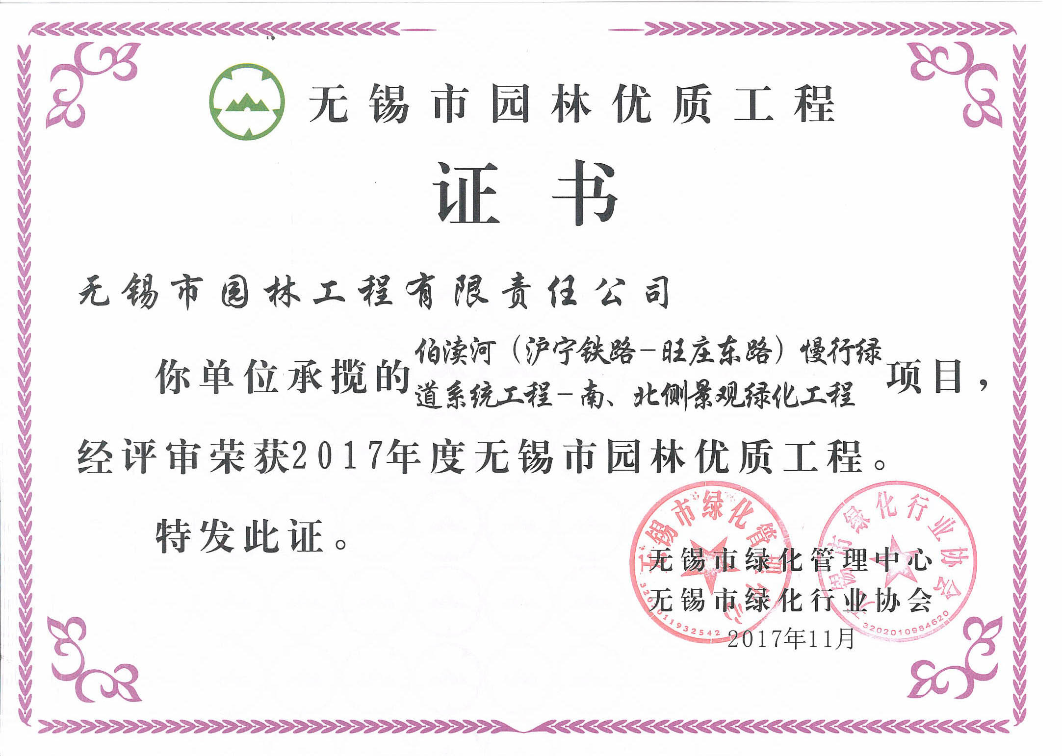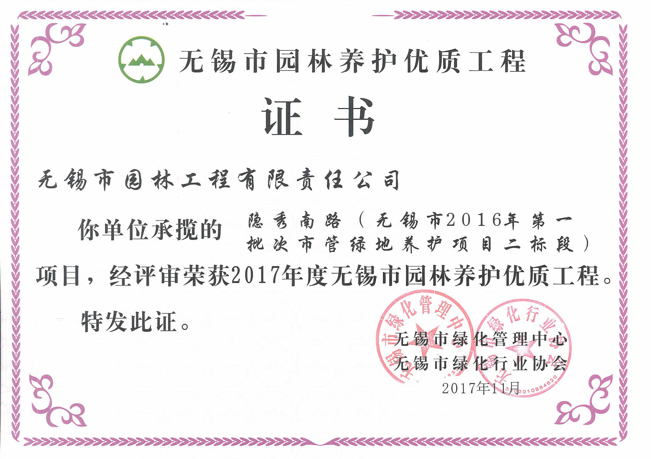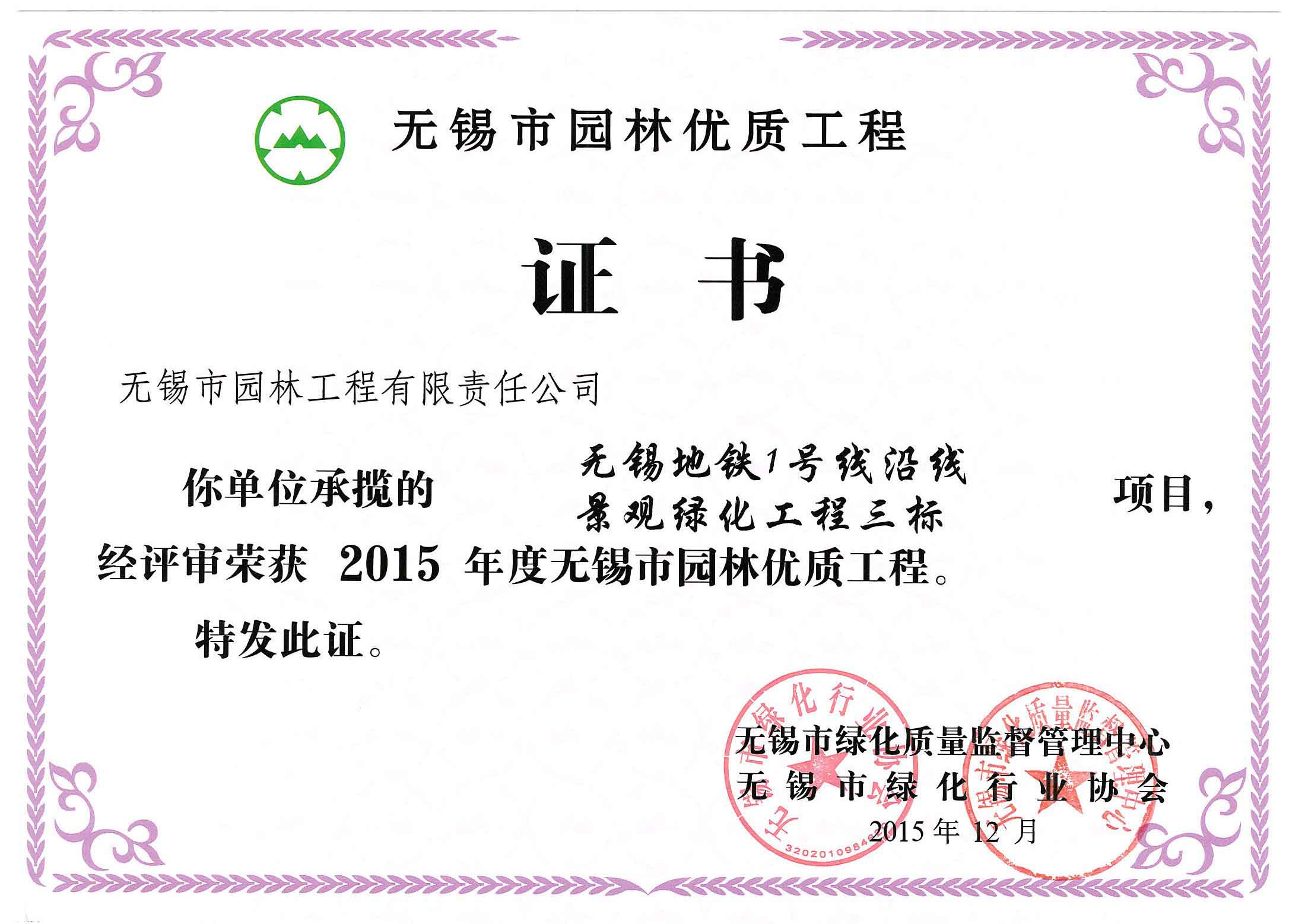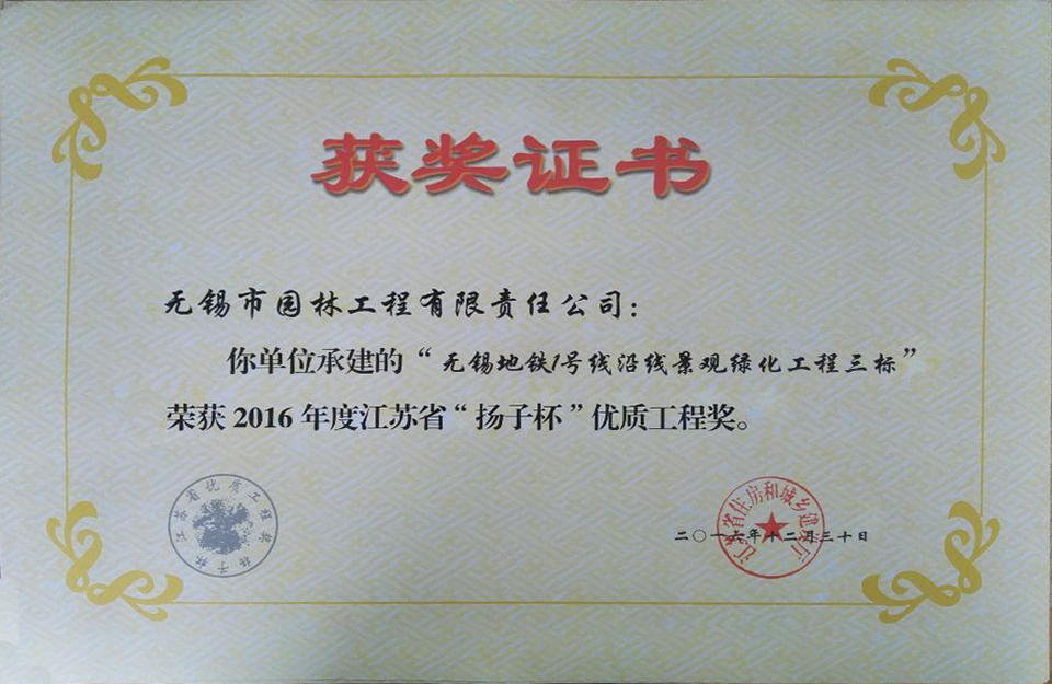 2016揚子杯——無錫地鐵1號線沿線景觀綠化工程三標(biāo)