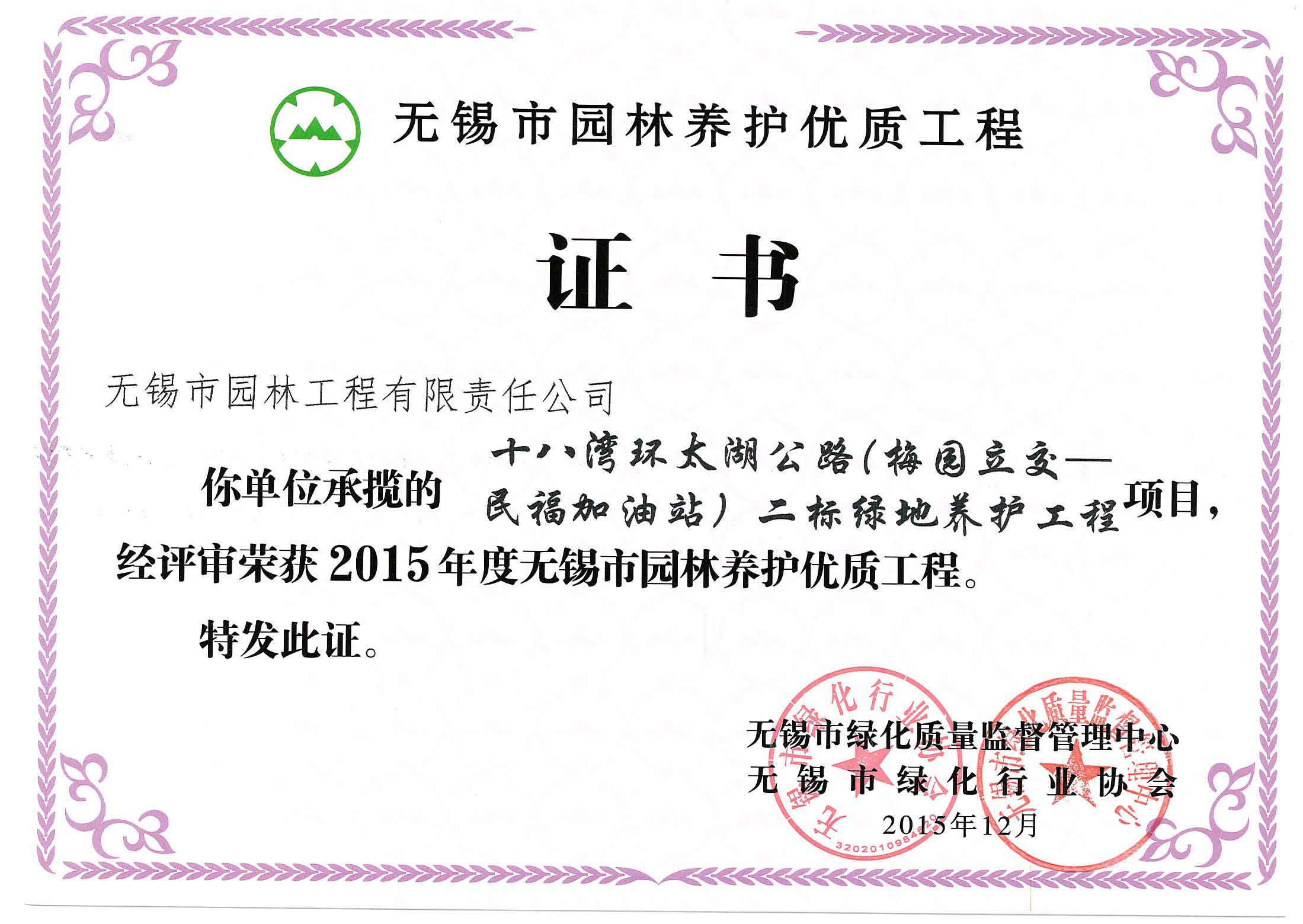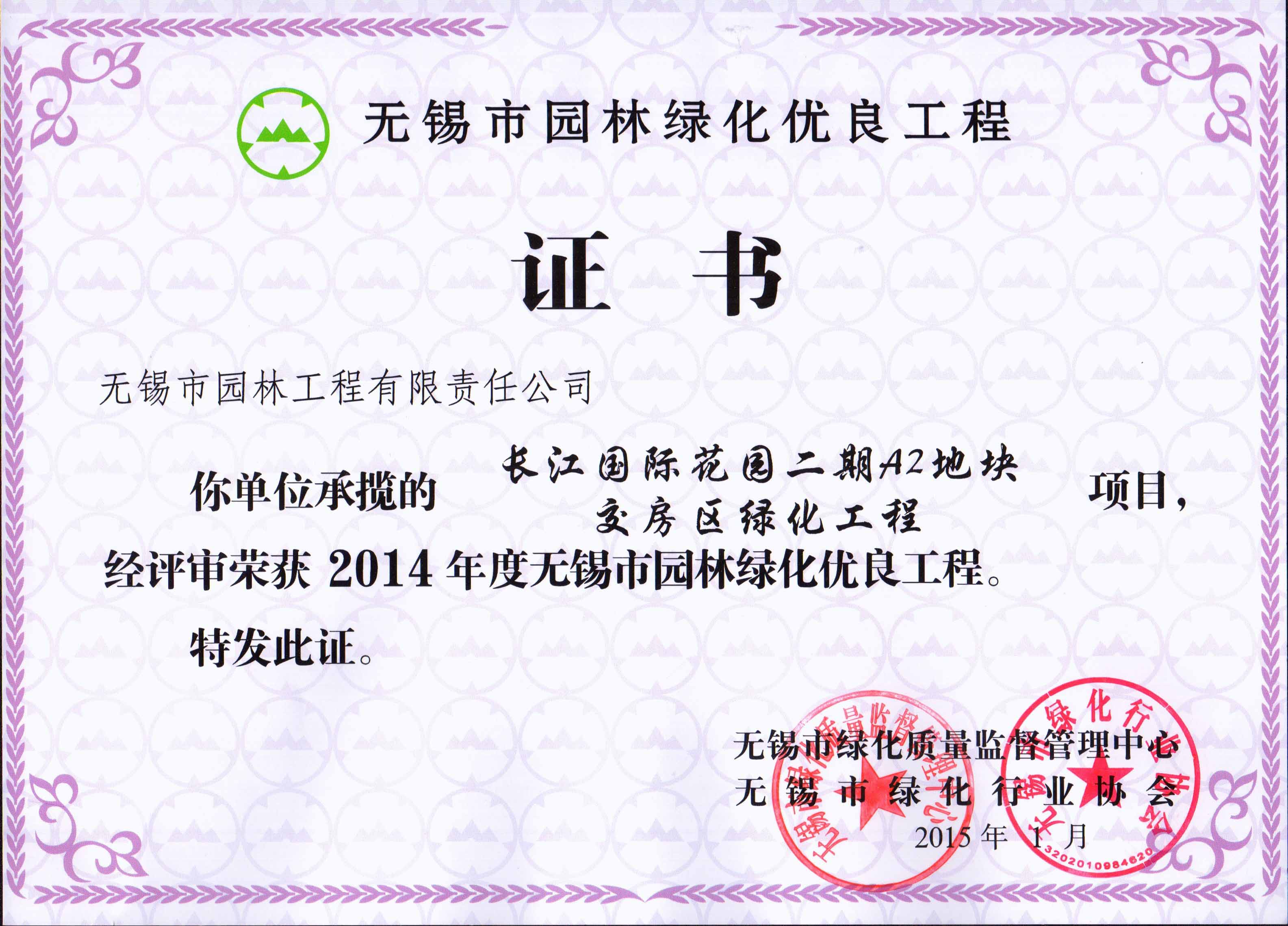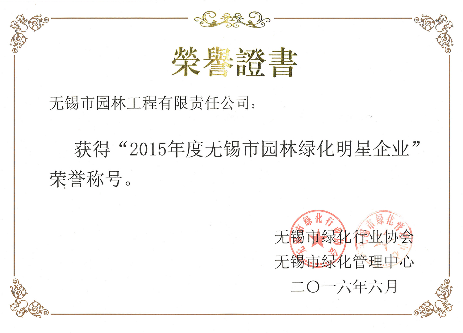 2015年度無錫市園林綠化明星企業(yè)