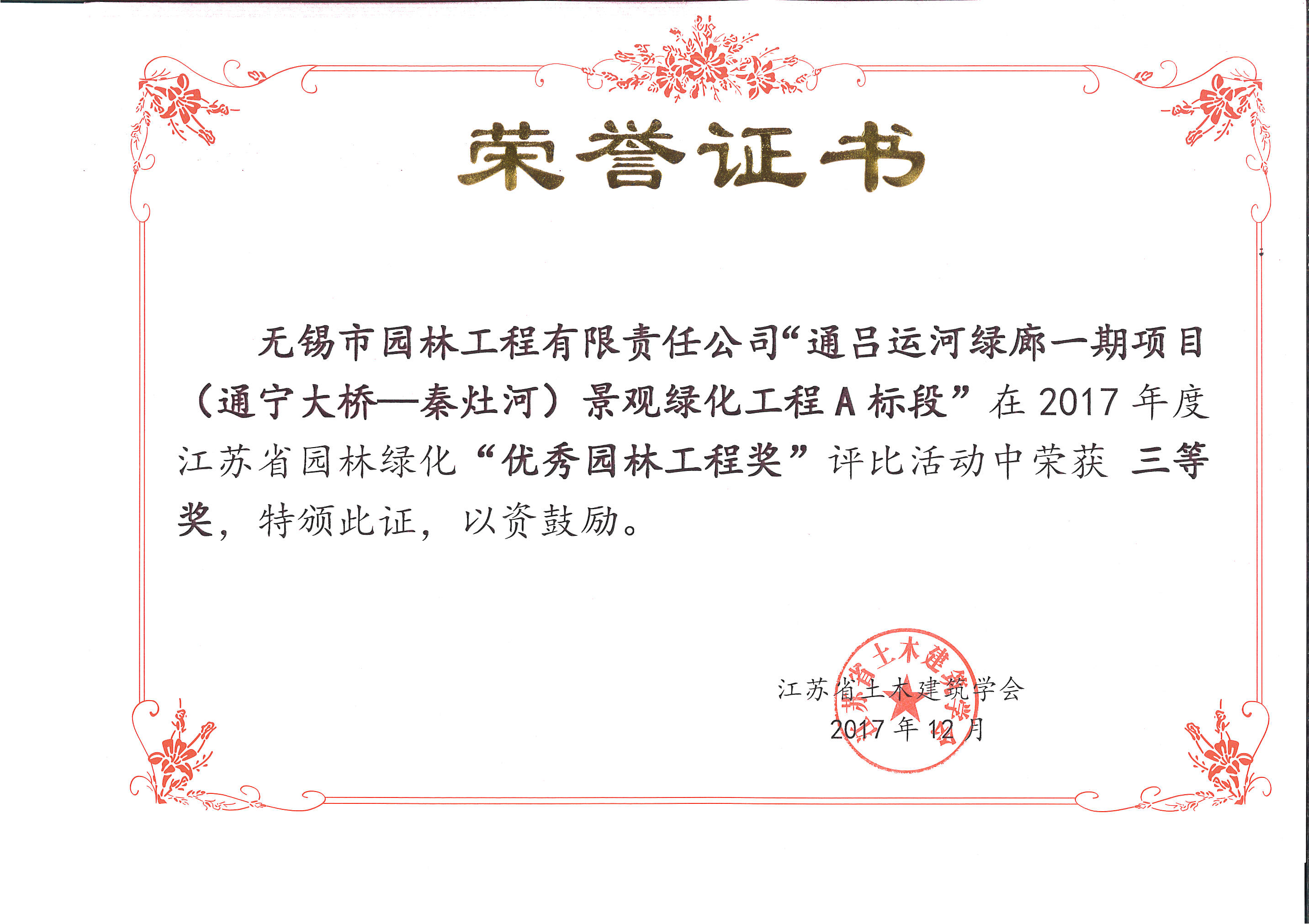 2017“揚子杯”—通啟路兩側(cè)景觀帶工程C標(biāo)段